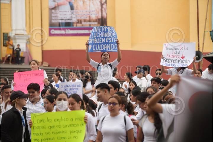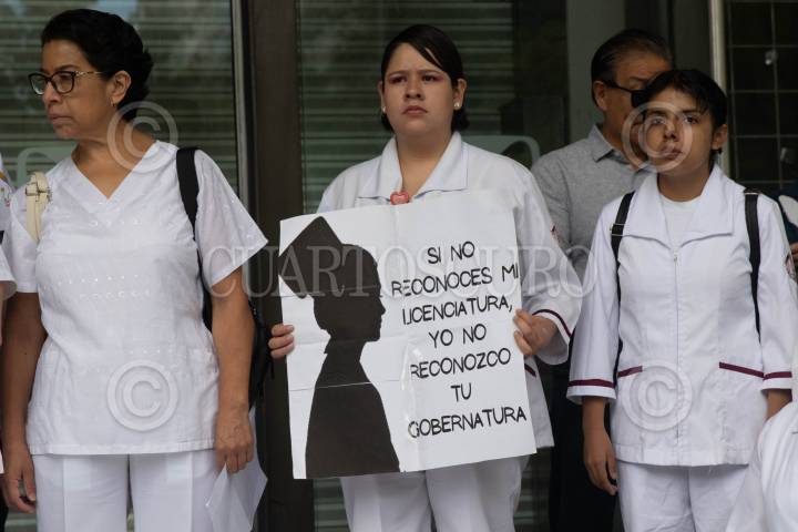 Enfermeras y enfermeros de Xalapa protestaron en contra de la reestructuración de IMSS-Bienestar pues afirman pretenden bajar hasta el 50 por ciento de los salarios.