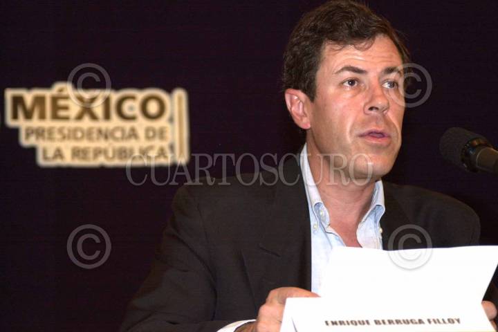 Enrique Berruga Filloy, subsecretario de Relaciones Exteriores en conferencia de prensa en el salón Venustiano Carranza en Los Pinos, donde anunció las proximas actividades de la gira del presidente Vicente Fox por Nueva York. FOTO: Sandra Perdomo/CUARTOSCURO.COM