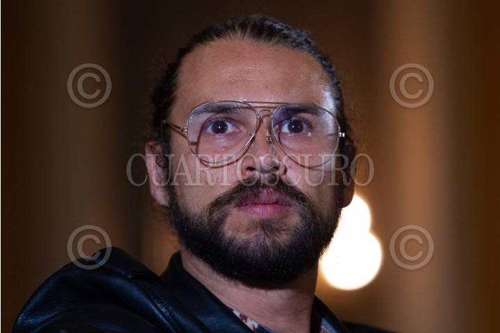Julián Navejas, integrante del grupo musical Enjambre, durante una conferencia de prensa para anunciar sus próximas fechas de concierto del 17 al 25 de septiembre en el Teatro Metropolitan
