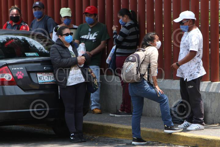 Familiares de pacientes internados por COVID-19 se mantienen a las afueras de hospitales en espera de noticias de sus seres queridos.