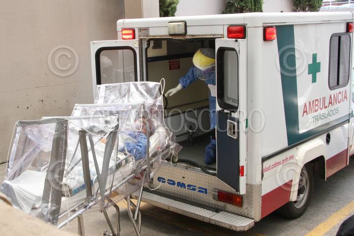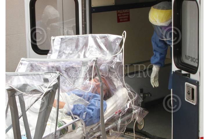 Ingreso en cápsula de mujer contagiada por COVID-19 Hospital Enrique Cabrera.