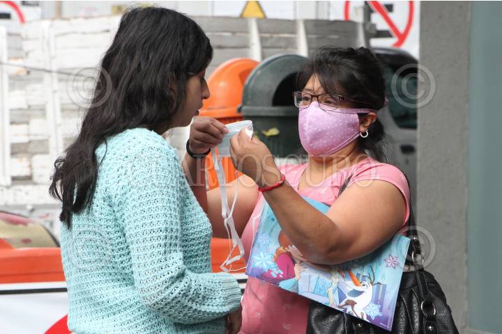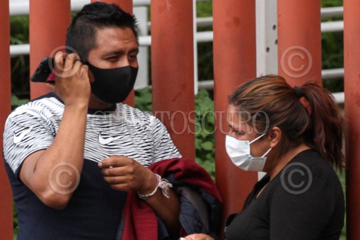 Madre ayuda a su hija a colocarse el cubrebocas momentos antes de entrar al Hospital de Nutrición.