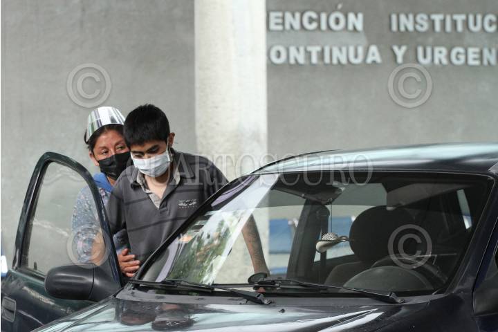 Madre ayuda a su hijo a bajar del carro, momentos antes de ser ingresado al hospital.