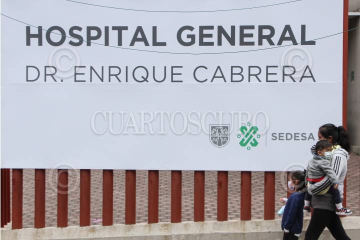 Una madre camina con sus hijos frente al hospital Enrique Cabrera.