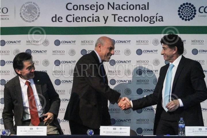 MÉXICO, D.F., 07ENERO2016.- En las instalaciones del Consejo Nacional de Ciencia y Tecnología se llevo a cabo la presentación de la colección de libros “Hacia dónde va la Ciencia”, la cual reúne el trabajo de científicos mexicanos en diferentes áreas como las ciencias sociales, física, química, ingeniería, entre otras. Presidieron el evento Enrique Cabrero Mendoza, director de CONACYT, Jorge Flores, coordinador del CCC y Jaime Urrutia, presidente de la AMC. FOTO: ISABEL MATEOS /CUARTOSCURO.COM