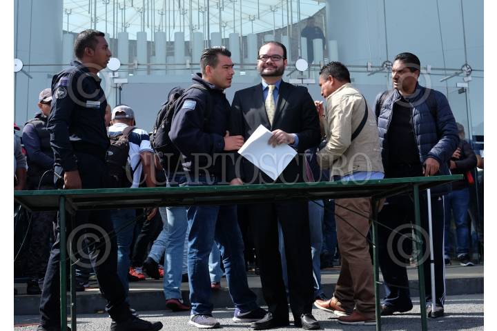 CIUDAD DE MÉXICO, 10JULIO2019.- Enrique Carpizo, presidente del Instituto para la Protección de los Derechos Humanos Asociación Civil y asesor de protesta del policías federales, y los policías Adrián López, y Mario Alberto Lover, se reunieron en comitiva encabezada por Claudia Edith Anaya Mota, senadora del PRI, en la que se acordó intervenir ante Alfonso Durazo, secretario de Seguridad y Protección Ciudadana para dar resolución a sus demandas. FOTO: MARIO JASSO /CUARTOSCURO.COM