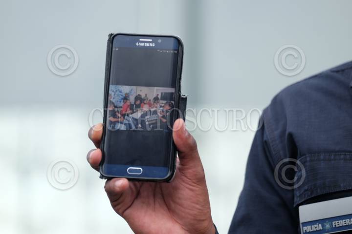 CIUDAD DE MÉXICO, 08JULIO2019.- Enrique Carpizo, licenciado y asesor, llegó nuevamente al Centro de Mando de la Policía Federal para anunciar que no se llegó a ningún acuerdo en Palacio Nacional para negociar la indemnización de los policías federales que no se van a integrar a la Guardia Nacional. En la imagen, el policía Mario Alberto Lover mostró uan fotografia dónde supuestamente existen mesas de diálogo alternas con los altos comisionados de la institución. FOTO: GRACIELA LÓPEZ /CUARTOSCURO.COM