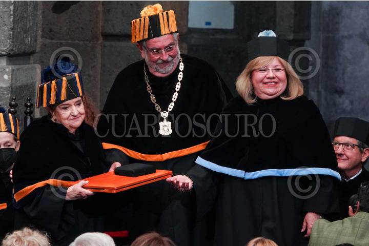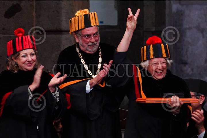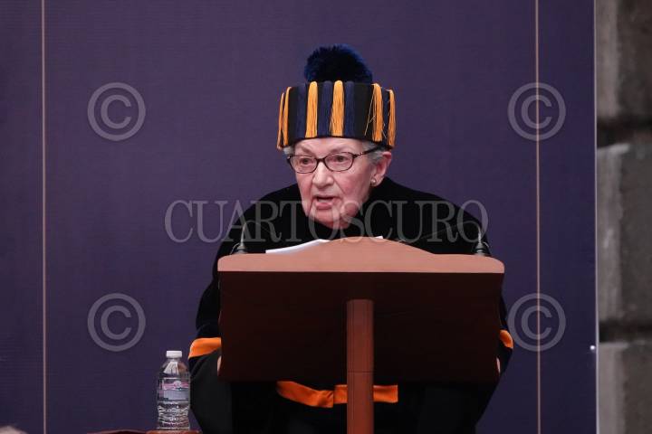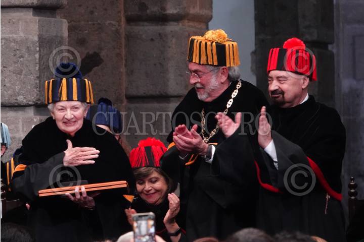 María Ángeles Durán fue condecorada como Doctora Honoris Causa de la UNAM por parte del rector Enrique Graue Wiechers en el Palacio de Minería.