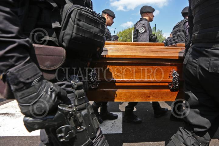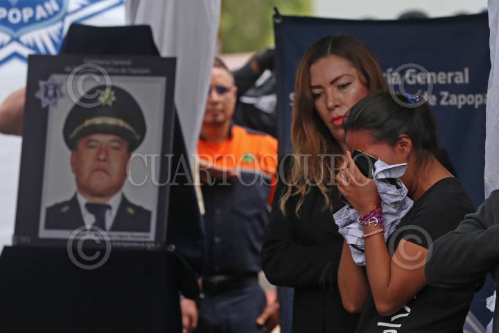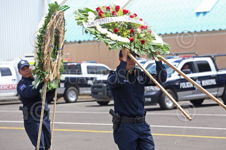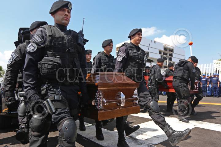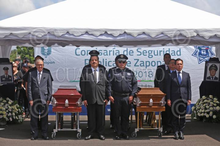 ZAPOPAN, JALISCO, 05SEPTIEMBRE2018.- Fueron homenajeados en el helipuerto de la Comisaria del municipio José de Jesús López Guzmán y Juan José Cortes Rangel, Policías caídos en el cumplimiento de su deber mientras atendían un reporte de asalto a mano armada el pasado lunes por la noche en la colonia el Mante, ya mencionada ceremonia fue encabezada por el Fiscal General del Estado Raúl Sánchez Jiménez, el Presidente Municipal de Zapopan Pablo Lemus Navarro y el Presidente Municipal de Guadalajara Enrique Ibarra Pedroza. FOTO: FERNANDO CARRANZA GARCIA / CUARTOSCURO.COM