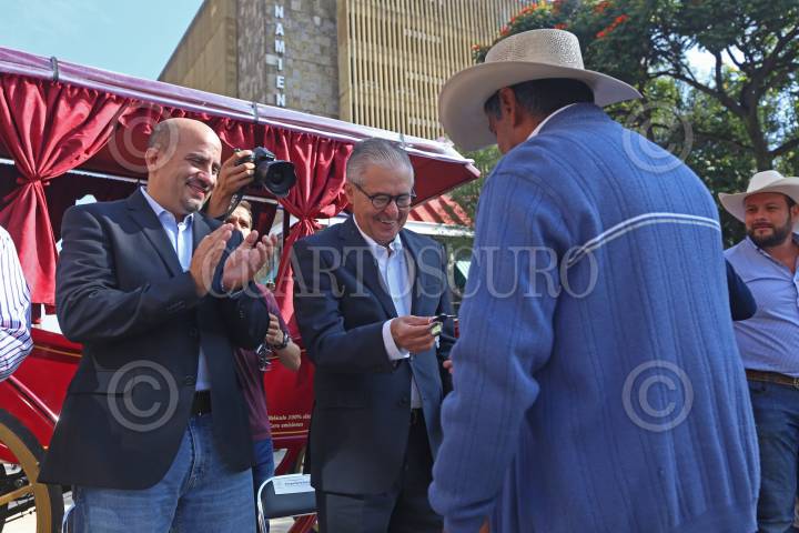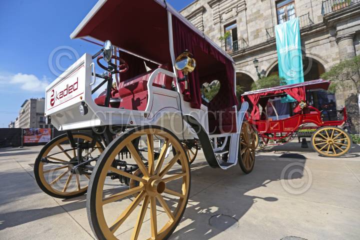 GUADALAJARA, JALISCO, 19SEPTIEMBRE2018.- El presidente municipal Enrique Ibarra Pedroza, encabezo la entrega de diez calandrias eléctricas mismas que se incorporan a los recorridos turísticos tradicionales en diversas zonas emblemáticas de la ciudad, dicho evento se llevó a cabo a un costado del Palacio Municipal. FOTO: FERNANDO CARRANZA GARCIA / CUARTOSCURO.COM