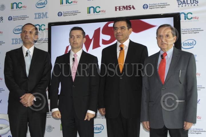 MÉXICO, D.F., 17SEPTIEMBRE2015.- Daniel Moska, titular de la Vicerrectoría Asociada del Instituto de Emprendimiento Eugenio Garza Lagüera; Rogelio de los Santos, presidente de INCmty; Enrique Jacob Rocha, presidente del Instituto Nacional del Emprendedor; y Salvador Alva, presidente del Tecnológico de Monterrey, participaron en la presentación de la tercera edición de INCmty 2015. Este encuentro es promovido por el Instituto de Emprendimiento Eugenio Garza Lagüera del Tecnológico de Monterrey y se celebrará en la ciudad de Monterrey del 20 al 22 de noviembre del presente año. FOTO: MOISÉS PABLO /CUARTOSCURO.COM