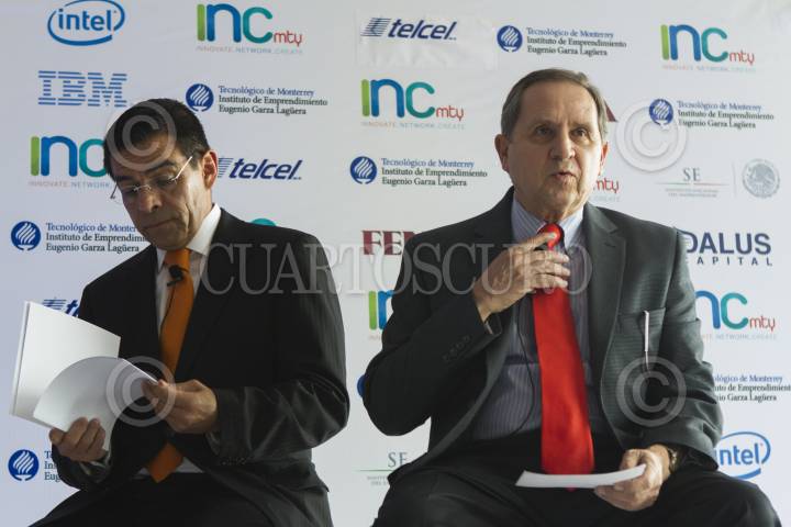 MÉXICO, D.F., 17SEPTIEMBRE2015.- Enrique Jacob Rocha, presidente del Instituto Nacional del Emprendedor y Salvador Alva, presidente del Tecnológico de Monterrey participaron en la presentación de la tercera edición de INCmty 2015. Esta plataforma de negocios es promovido por el Instituto de Emprendimiento Eugenio Garza Lagüera del Tecnológico de Monterrey y se celebrará en la ciudad de Monterrey del 20 al 22 de noviembre del presente año. FOTO: MOISÉS PABLO /CUARTOSCURO.COM