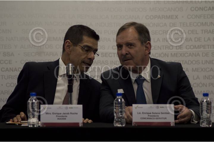 CIUDAD DE MÉXICO, 27JULIO2016.- Enrique Jacob Rocha, presidente del INADEM y Enrique Sola Sentíes, presidente de la CONCANACO-SERVITUR, durante la conferencia de prensa para anunciar la convocatoria del Premio Nacional de Calidad 2016. FOTO: GALO CAÑAS /CUARTOSCURO.COM