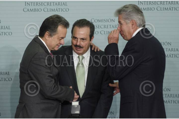 MÉXICO, D.F., 29ENERO2013.- Los secretarios de estado; Pedro Joaquín Coldwell, Energía, Enrique Martínez, Agricultura, y Gerardo Ruíz Esparza, Comunicaciones y Transportes, durante la instalación de la comisión de cambio climático, encabezada por Enrique Peña Nieto, en la residencia de Los Pinos. FOTO: MISAEL VALTIERRA /CUARTOSCURO.COM