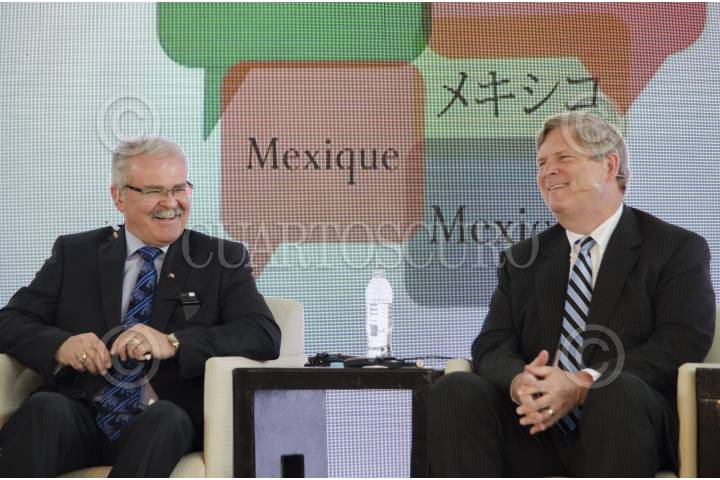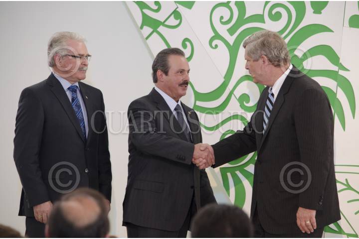 MÉXICO, D.F., 19MAYO2014.- Enrique Martínez y Martínez, titular de SAGARPA, inauguró el Primer Foro Global de Expectativas Agroalimentarias 2014, con la participación de Thomas Vilsack, secretario del Departamento de Agricultura de los Estados Unidos; y Gerry Ritz, ministro de Agricultura y de Industria Agroalimentaria de Canadá. El jefe de gobierno de gobierno capitalino, Miguel Ángel Mancera, acudió de igual forma a la inauguración. El titular de SAGARPA resaltó que “México actualmente cuenta con 12 tratados de comercio con 45 países en el mundo, en donde el aprovechamiento debe ser comercial a través de una homologación de las normas fronterizas”. FOTO: MARÍA JOSÉ MARTÍNEZ /CUARTOSCURO.COM