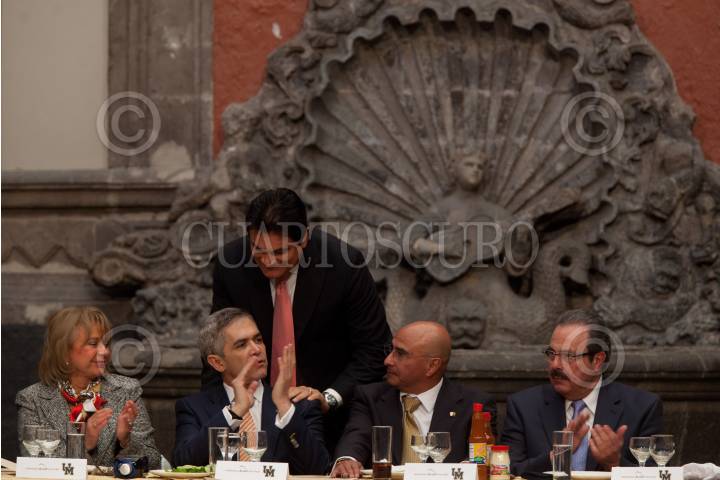 MÉXICO, D.F., 04DICIEMBRE2014.- La "Hermandad Puma" entrego chamarras universitarias al Gobernador de Sinaloa, Marío López Valdez, al titular de SAGARPA, Enrique Martínez y Martínez, así como a la ministra Olga Sánchez Cordero y el Jefe de Gobierno Miguel Ángel Mancera, entre otros personajes. La ceremonia se realizó en el el Museo de la Ciudad de México. FOTO: CUARTOSCURO.COM"
