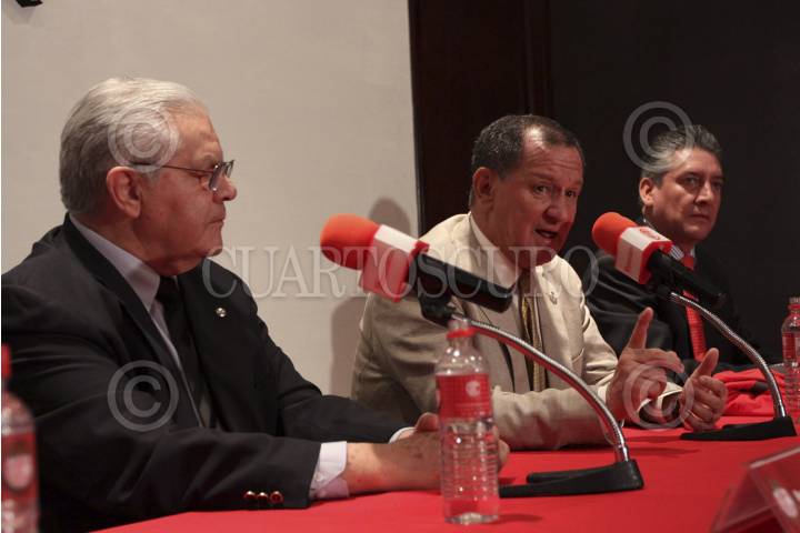PUEBLA, PUEBLA; 04OCTUBRE2017.- Carlos López Domínguez, presidente del Club Puebla realizó la presentación oficial de Enrique "Ojitos" Meza como director técnico del Club Puebla para lo que resta del torneo Apertura 2017. FOTO: HILDA RÍOS/ CUARTOSCURO.COM
