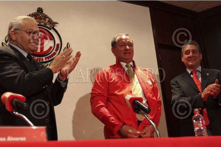 TOLOCA, ESTADO DE MÉXICO.- Enrique Meza, fue presentado por los Diablos Rojos del Toluca, como su nuevo entrenador. "El Ojitos Meza" firmó por lo menos durante un año para dirigir al equipo. FOTO: LUIS VÁZQUEZ/CUARTOSCURO.COM