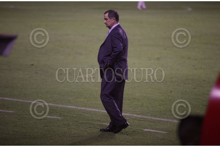 MORELIA, MICHOACÁN, 23SEPTIEMBRE2015.- Monarcas perdió contra Chivas en partido de Cuartos de Final de la Copa MX por 1-2 en el Estadio Morelos, con esto termina la participación de el equipo rojiamarillo en este torneo. En la imagen el Director Técnico de Monarcas. Enrique Meza FOTO: ALAN ORTEGA / CUARTOSCURO.COM