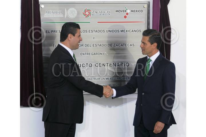 ZACATECAS, ZACATECAS, 23JUNIO2014.- El presidente de la República, Enrique Peña Nieto, inauguró el Gasoducto Centenario, de 173 kilómetros. En la imagen, con el gobernador de la entidad Miguel Alonso. FOTO: CUARTOSCURO.COM