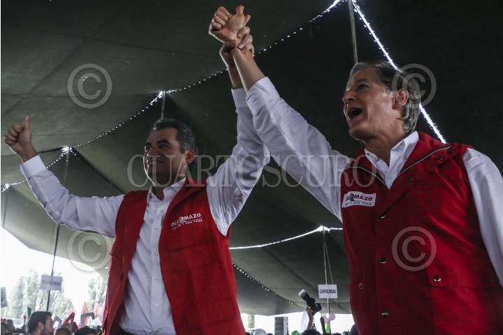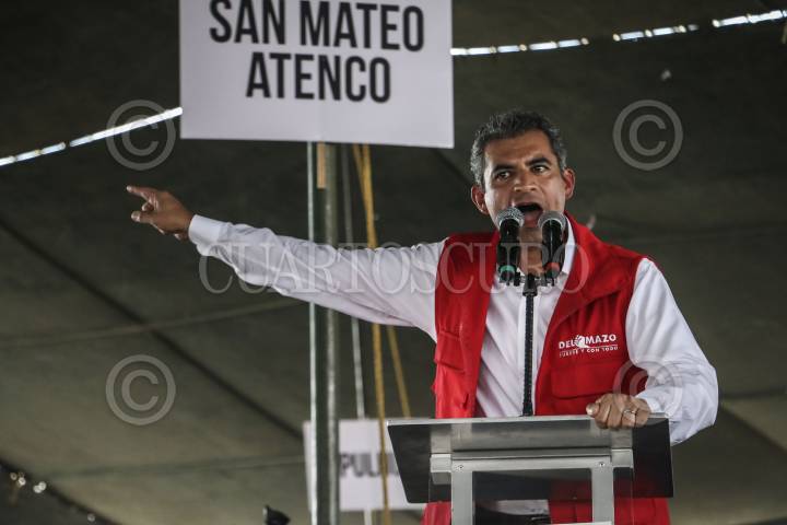 SAN MATEO ATENCO, ESTADO DE MÉXICO, 23MAYO2017.- El candidato por la coalición PRI, Nueva Alianza, PES y Verde Ecologista Alfredo del Mazo en compañía del presidente del Comité Ejecutivo Nacional del PRI, Enrique Ochoa Reza sostuvo un encuentro con liderazgos sociales, sociedad civil y vecinos del sector para dar a conocer sus propuestas principalmente en materia educativa, seguridad, salud y transporte. FOTO: RASHIDE FRIAS /CUARTOSCURO.COM