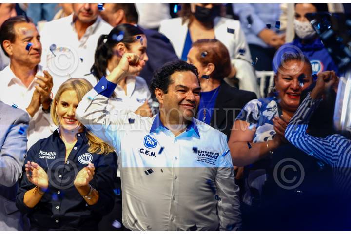 La militancia panista mostró su respaldo a Enrique Vargas del Villar rumbo a la gubernatura del Estado de México en el 2023, acompañado por el presidente nacional del PAN, Markos Cortés, gobernadores, senadores, diputados federales, alcaldes.