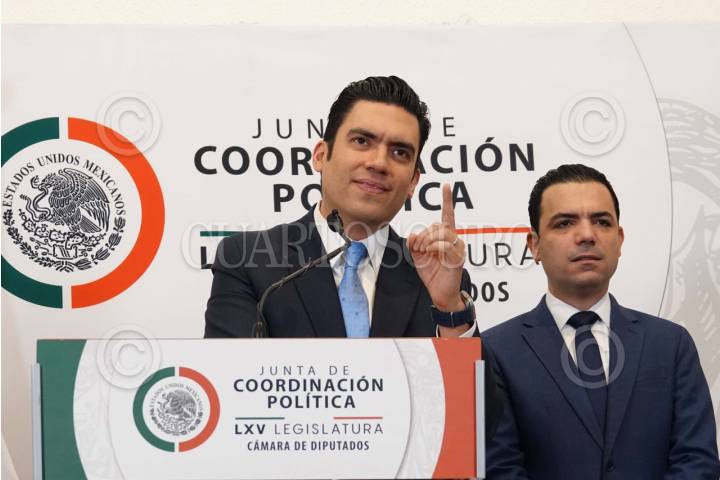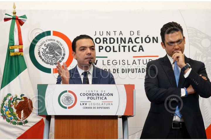CIUDAD DE MÉXICO, 05MARZO2024.- Jorge Romero, presidente de la Junta de la Coordinación Política, acompañado de Enrique Vargas del Villar, vicepresidente de la JUCOPO, durante una conferencia en la Cámara de Diputados. FOTO: GRACIELA LÓPEZ /CUARTOSCURO.COM