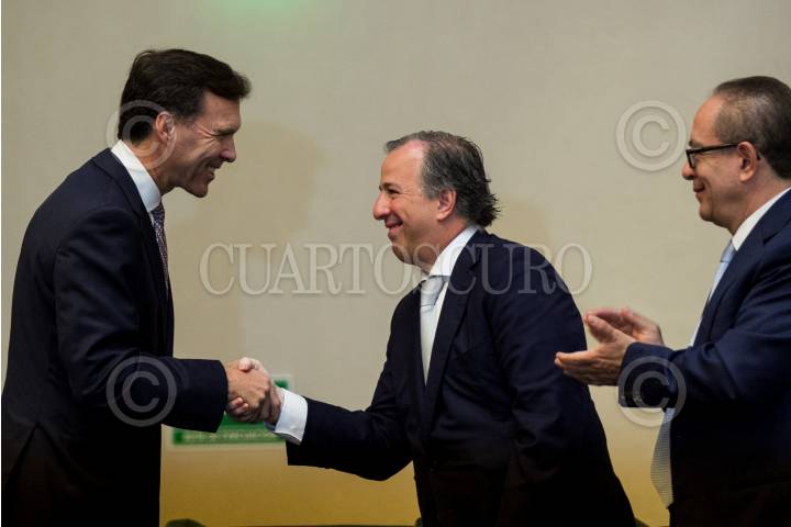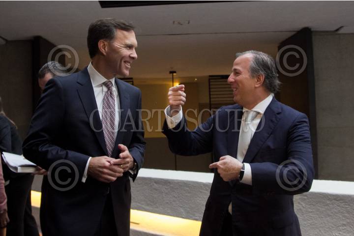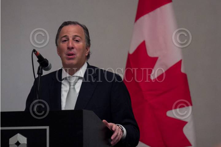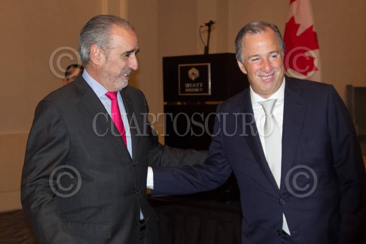 CIUDAD DE MÉXICO, 14SEPTIEMBRE2017.- Enrique Zorrilla, presidente y director de Scotiabank, y José Antonio Meade Kuribreña, secretario de Hacienda y Crédito Público, durante la conferencia con motivo de la visita de William Francis Morneau, ministro de Finanzas de Canadá, para discutir sobre la relación bilateral entre las dos naciones. FOTO: GALO CAÑAS /CUARTOSCURO.COM