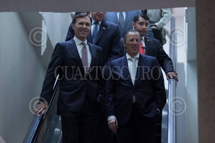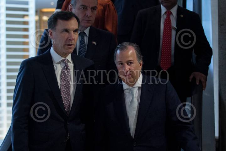 CIUDAD DE MÉXICO, 14SEPTIEMBRE2017.- William Francis Morneau, ministro de Finanzas de Canadá , y José Antonio Meade Kuribreña, secretario de Hacienda y Crédito Público, durante la conferencia con motivo de la visita del ministro para discutir sobre la relación bilateral entre las dos naciones. FOTO: GALO CAÑAS /CUARTOSCURO.COM