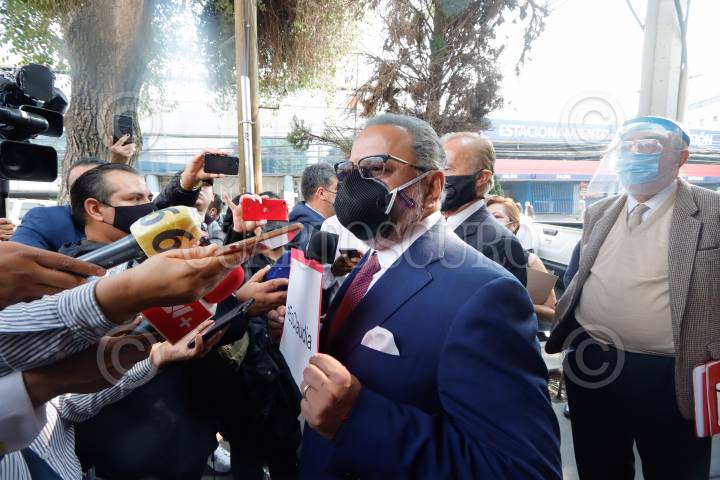 Enrique Horcasitas y Gabriel Regino llegan a la audiencia de la Línea 12, en los Tribunales de Justicia de la CDMX.