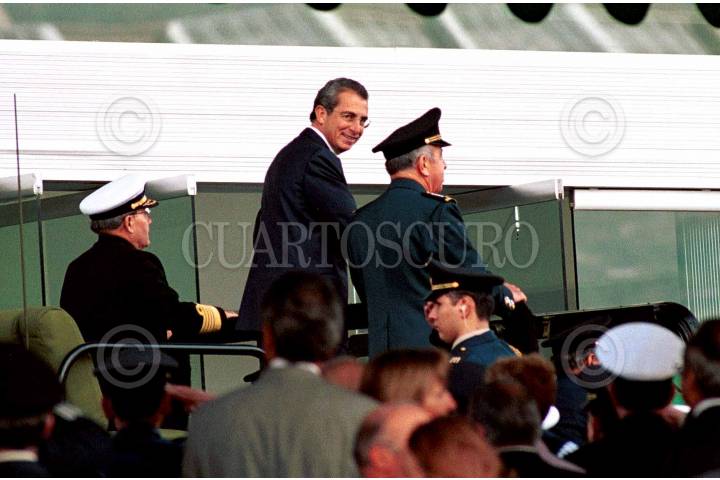 Ernesto Zedillo en su calidad de comandante supremo de las fuerzas armadas, clausuró el ciclo escolar del Colegio Militar 99-2000, lo acompaña el secretario General, Enrique Cervantes Aguirre. FOTO: Christian Palma/CUARTOSCURO.COM