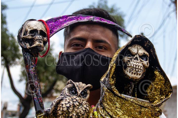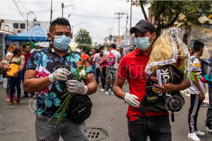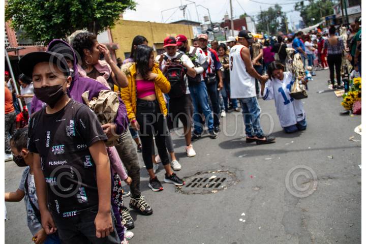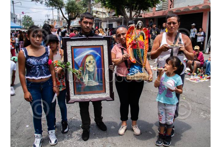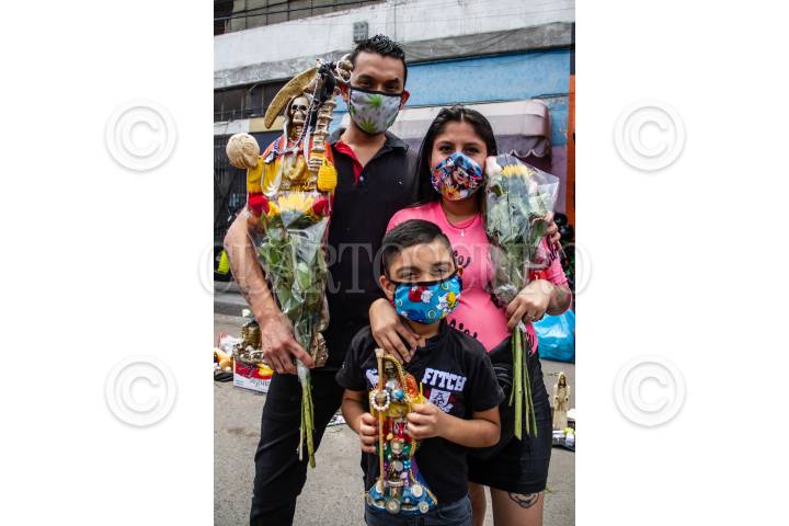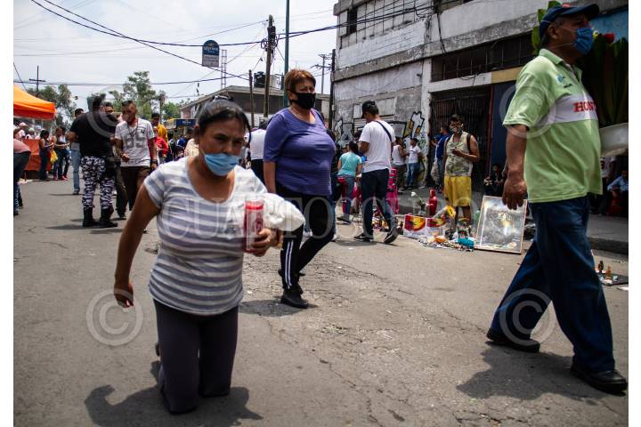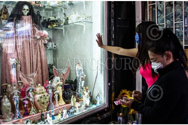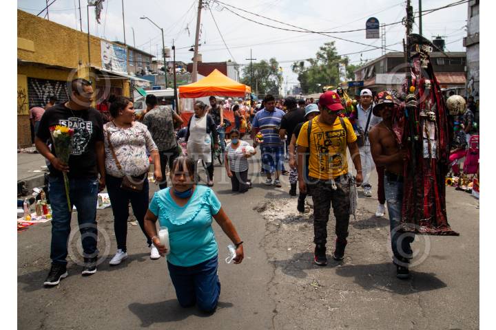 En fase 3 de la pandemia COVID-19 (Coronavirus) y pese a las recomendaciones de la Secretaría de Salud de quedarse en casa, decenas de creyentes de la Santa Muerte se congregaron en la calle Alfarería en Tepito, donde ya es tradición ir el primero de