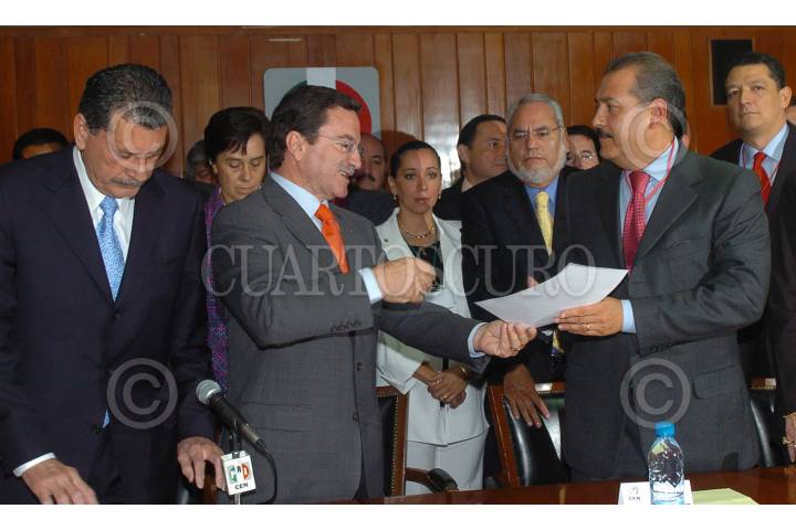 Enrque Jackson ,Mariano Palacios , presidente del PRI entrega la constancia como coordinador en la cámara de senadores. Manlio Fabio Beltrones FOTO: Fernando García/CUARTOSCURO.COM