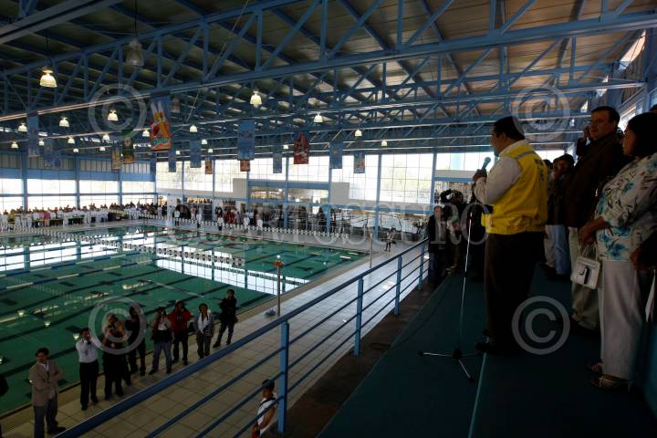 MÉXICO D.F., 20DICIEMBRE2008.- Marcelo Ebrad Jefe de Gobierno del Distrito Federal inaguro esta mañana alberca olímpica "Bicentenario de la Independencia" en Tláhuac acompañado por el jefe delegacional Gilberto Ensástiga Santiago. FOTO: DARIO RODRÍGUEZ/CUARTOSCURO.COM