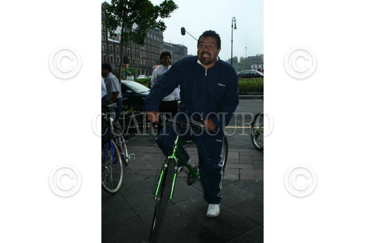 MÉXICO, D.F. 02JULIO2007.- Gilberto Ensástiga Santiago, jefe delegacional de Tlahuac realizó un recorrido en bicicleta desde dicha demarcación hasta la sede del Gobierno del Distrito Federal donde se llevó a cabo una entrega de reconocimientos a policías de tránsito que apoyan el programa del Ciclitón. FOTO: PAOLA HIDALGO/CUARTOSCURO.COM