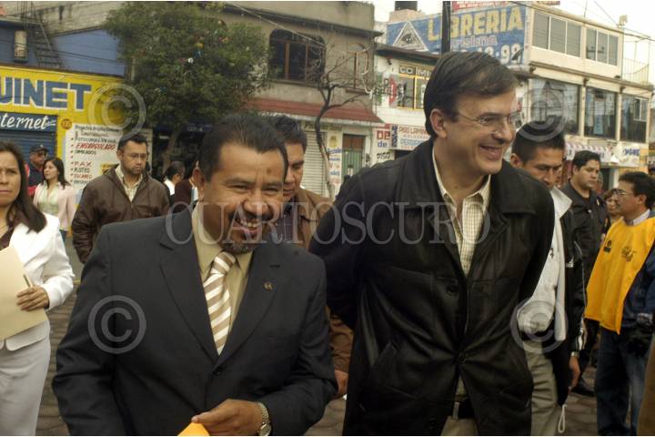MÉXICO, D.F., 29SEPTIEMBRE2007.- Gilberto Ensastiga, delegado de Tlahuác y Marcelo Ebrard Casaubón, Jefe de Gobierno, entregaron becas, patrullas, vehículos, tractores en la explanada de la demarcación. FOTO: IVÁN MENDEZ/CUARTOSCURO.COM