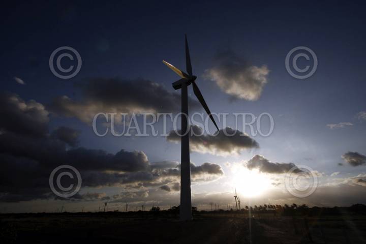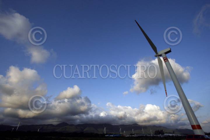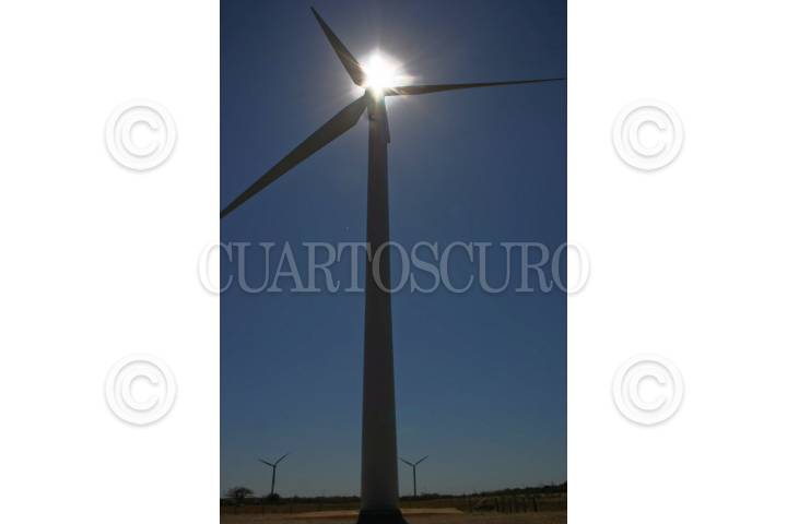 JUCHITAN, OAXACA, 22ENERO2009.- Un molino de viento trabaja en la Central de Energía Parques Ecológicos de México que fue inaugurada por el Presidente de México. Esto tuvo lugar en el Proyecto Parques Ecológicos de México, ejido la Ventosa en el Istmo de Tehuantepec, con una infraestructura que supera los diez millones de pesos. FOTO: MAX NÚÑEZ/CUARTOSCURO.COM