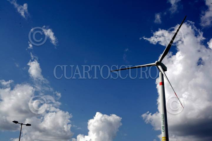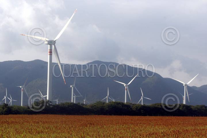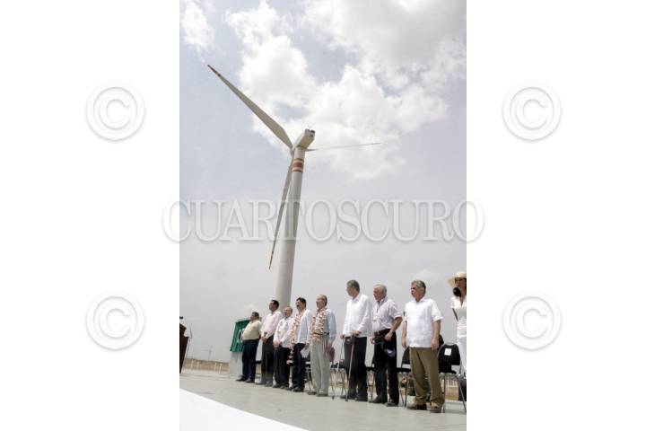 JUCHITÁN DE ZARAGOZA, OAXACA, 22ENERO2009.- La energía eólica es la energía obtenida del viento, o sea, la energía cinética generada por efecto de las corrientes de aire, y que es transformada en otras formas útiles para las actividades humanas. En la actualidad, la energía eólica es utilizada principalmente para producir energía eléctrica mediante aerogeneradores. Por lo que el gobierno federal ha emprendido una serie de proyectos de energía renovable como la Central de Energía Eólica Parques Ecológicos de México que se instaló en esta comunidad oaxaqueña. El Jefe del Ejecutivo señalo que estos proyectos permiten que no se distraigan recursos para la educación o la salud..“La energía renovable, la que no se acaba; un día se puede acabar, incluso, hasta el petróleo”, agregó. Además una vez que sean completadas las obras que se realizan en La Ventosa, sólo con el viento, sin quemar una sola gota de petróleo se va a generar casi tanta electricidad como la que se genera en Chiapas con las presas de Chicoasén, de Malpaso o de Peñitas y un costo por este tipo de molinos de 20 millones de pesos. FOTO: CARLOS SALINAS ENRIQUEZ/CUARTOSCURO.COM