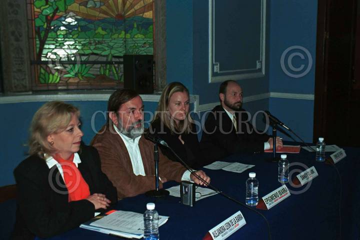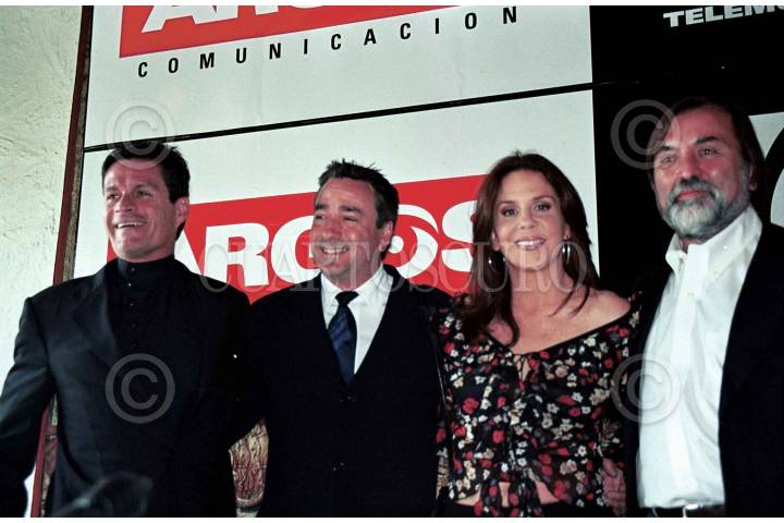 Alejandra León de la Barra, Epigmenio Ibarra, Sandy Clark y Emilio Díaz en confrerencia de prensa anunciaron que Argos Comunicación , será anfitrión de las semifinales de los premios EMMY Internacionales 2003. FOTO: Ricardo Hernández/CUARTOSCURO.COM