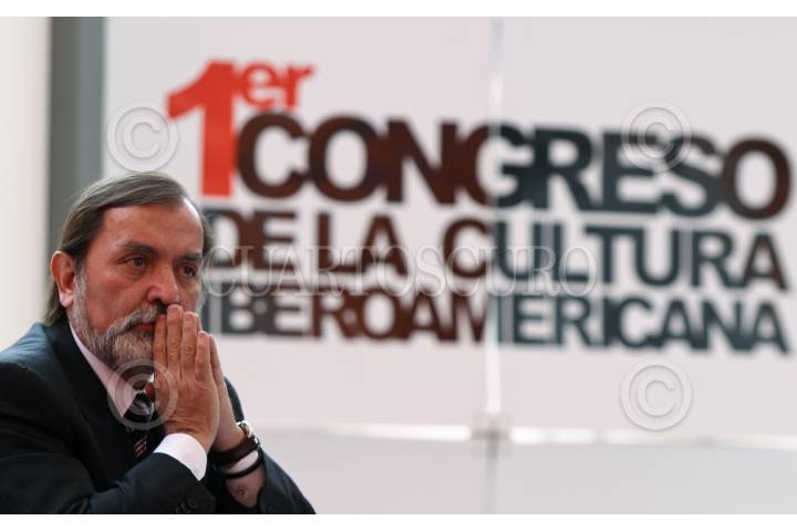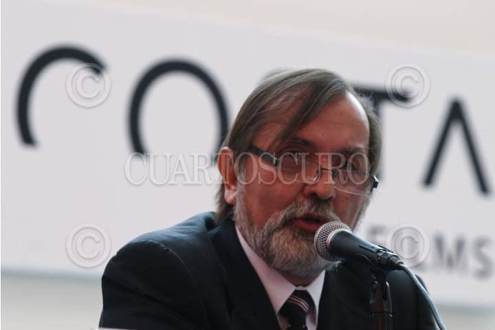 MÉXICO D.F., 03OCTUBRE2008.- Epigmenio Ibarra, director general de Argos Cine durante la presentación de la película "Noticia de un Secuestro", esto dentro de las actividades del 1er Congreso de la cultura Iberoamericana que se realiza en el Centro Nacional de las Artes. FOTO: RODOLFO ANGULO/CUARTOSCURO.COM