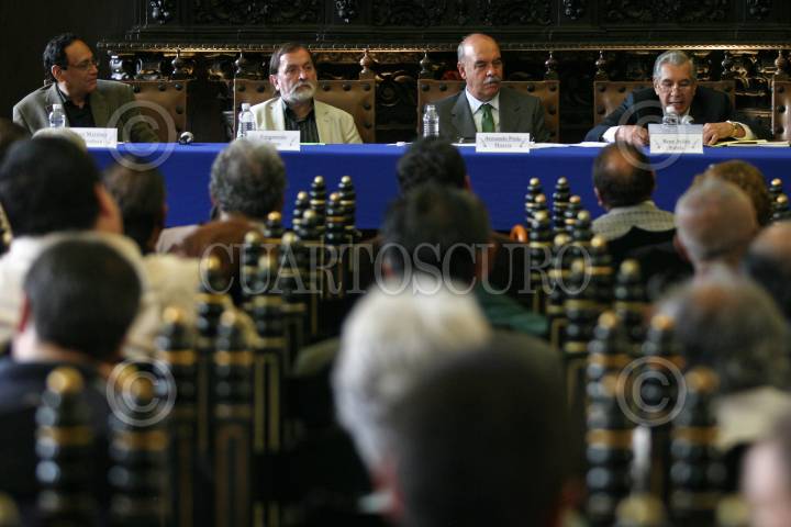 MÉXICO, D.F., 19AGOSTO2008.- Guadalupe Loaeza, Carlos Monsivais, Carlos Marín, Sergio Aguayo, Héctor Vasconcelos y Epigmenio Ibarra, en el primer fóro de crítica y diálogo público hacia el 2010, el cual se realiza en el Sheraton del Centro Histórico de la Ciudad. FOTO: VICTORIA VALTIERRA/CUARTOSCURO.COM