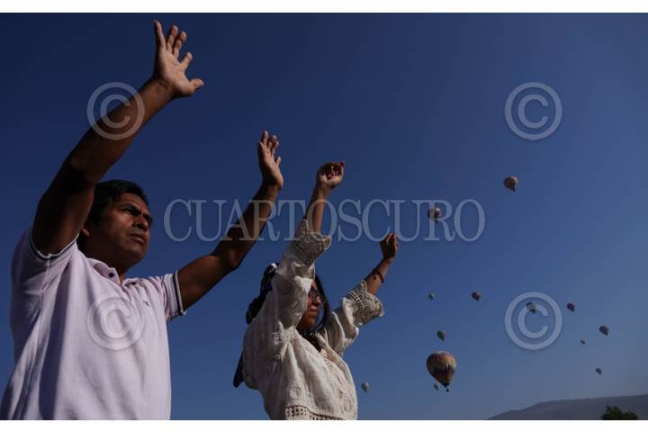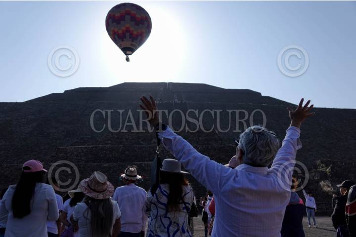 TEOTIHUACÁN, ESTADO DE MÉXICO, 21MARZO2025.- Decenas de globos aerostáticos adornan el cielo de la Zona Arqueológica de Teotihuacán durante el primer día del inicio de la Primavera FOTO: GALO CAÑAS/CUARTOSCURO.COM