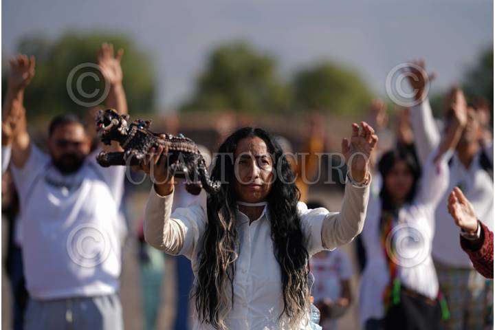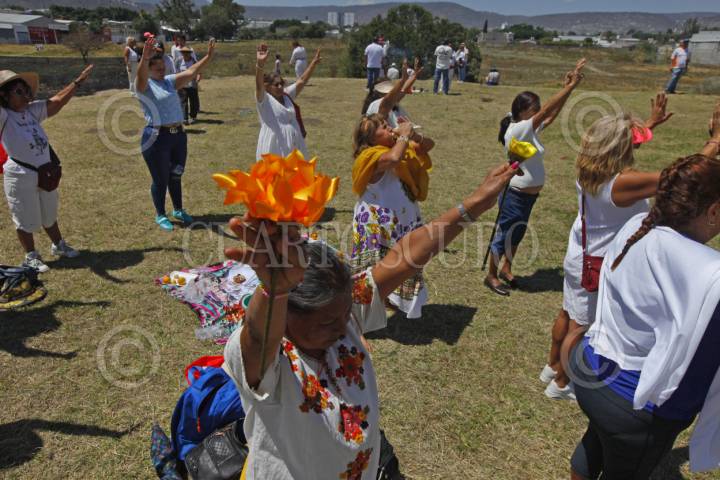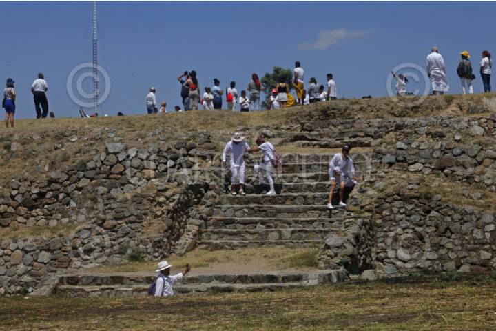 ZAPOPAN, JALISCO, 21MARZO2023.- Decenas de personas acudieron a la zona Arqueológica del Ixtepete, para recibir el equinoccio de la primavera. FOTO: FERNANDO CARRANZA GARCIA / CUARTOSCURO.COM