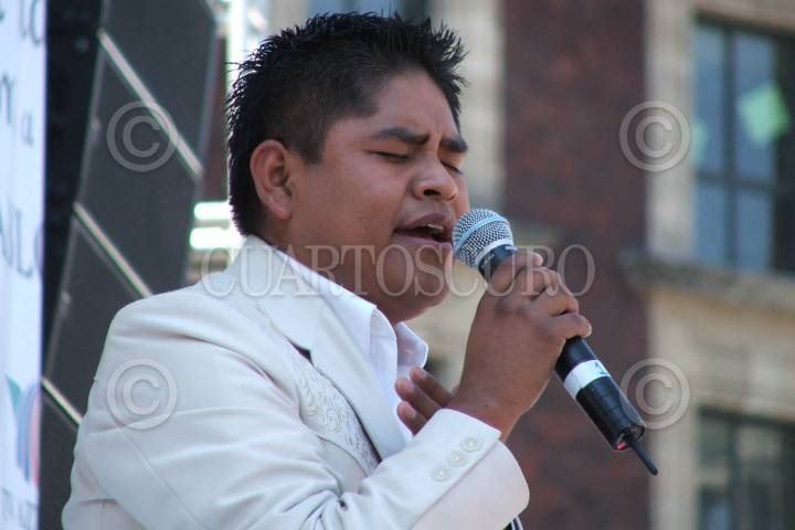 MEXICO, D.F. 29OCTUBRE2006.- Erasmo Catarino ganador de la cuarta generación del programa "La academia" durante el concierto que se realizó en el zocalo capitalino con el motivo de la colocación en la catedral metropolitana de la estatua en memoria del papa Juan Pablo II. FOTO: SAUL LÓPEZ ESCORCIA/CUARTOSCURO.COM