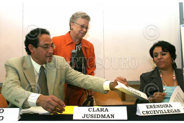 MEXICO, D.F. 21JUNIO2006.- Sergio Aguayo, Clara Jusidma y Erèndira Cruzvillegas previo a la conferencia de prensa del Comité Conciudadano de Seguimiento del Proceso Electoral. FOTO: Nelly Salas/CUARTOSCURO.COM