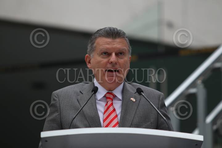 José Antonio Monroy, director general de Cruz Roja en México, durante la la inauguración de la exposición “Principios Humanitarios aquí y ahora”, en el Senado de la República.