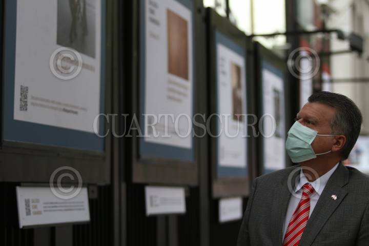 Eric Mayoraz, embajador de Suiza en México, durante la inauguración de la exposición “Principios Humanitarios aquí y ahora”, en el Senado de la República.