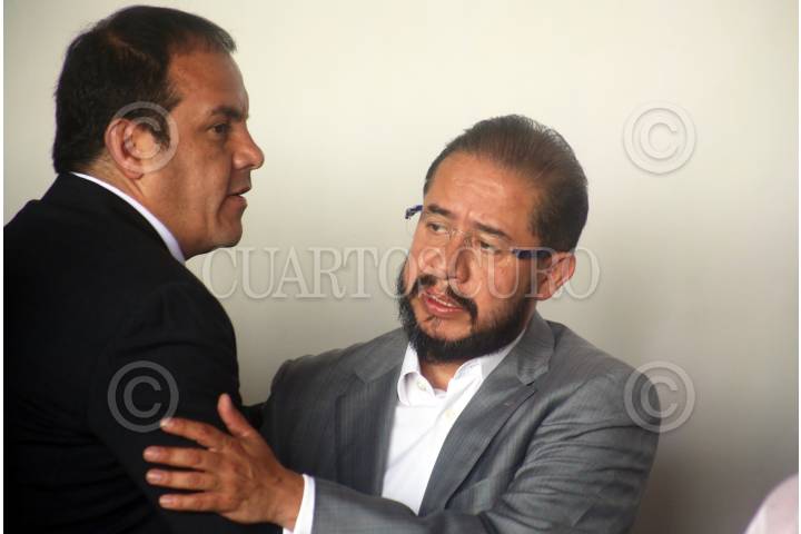 CUERNAVACA, MORELOS, 10JULIO2019. El gobernador del estado, Cuauhtémoc Blanco Bravo, se despide del delegado de programas sociales del gobierno federal, Hugo Erick Flores al finalizar el Foro “Derechos Humanos de los Niños y Niñas” del Programa Nacional de Derechos Humanos. FOTO: MARGARITO PÉREZ RETANA /CUARTOSCURO.COM