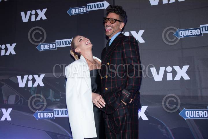 Karla Guindi y Erick Elías a su paso por la alfombra verde por el estreno de la película "Quiero tu vida", distribuida por la plataforma ViX.