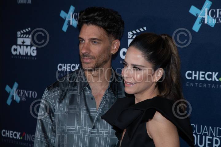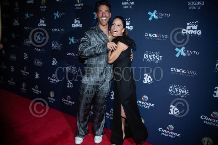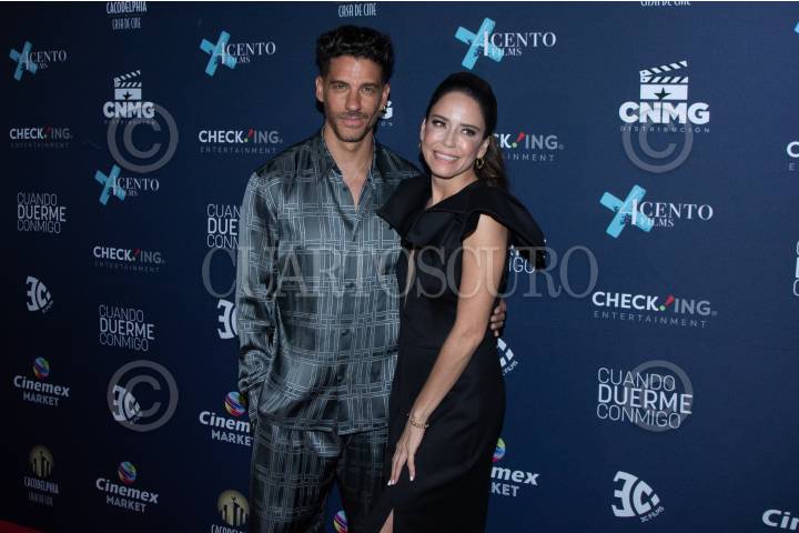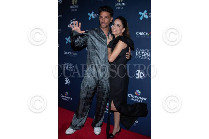 Erick Elías y Ana Claudia Talancon a su paso por la lafombra roja por el estreno de la película “Cuando duerme conmigo”, en una plaza de la Avenida Insurgentes.